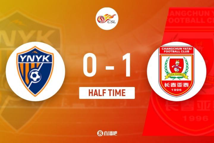 上半场比赛结束,长春亚泰客场暂时1-0领先云南玉昆。