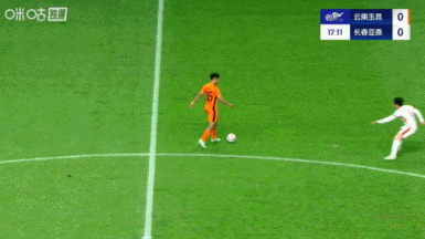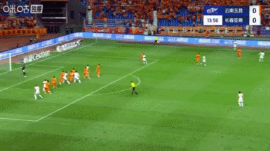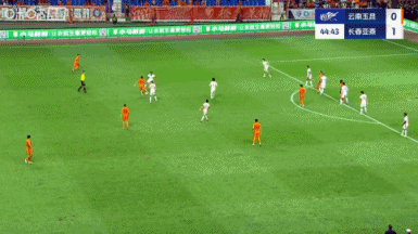 第13分钟,弋腾连续两次拦截亚泰进攻。↓